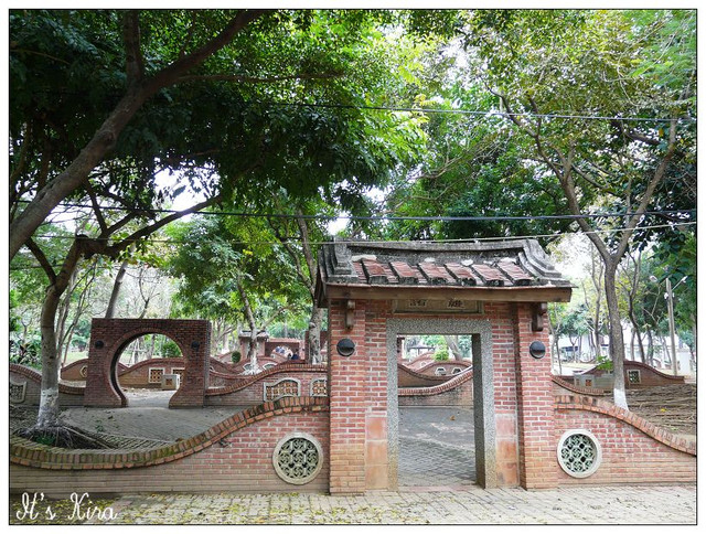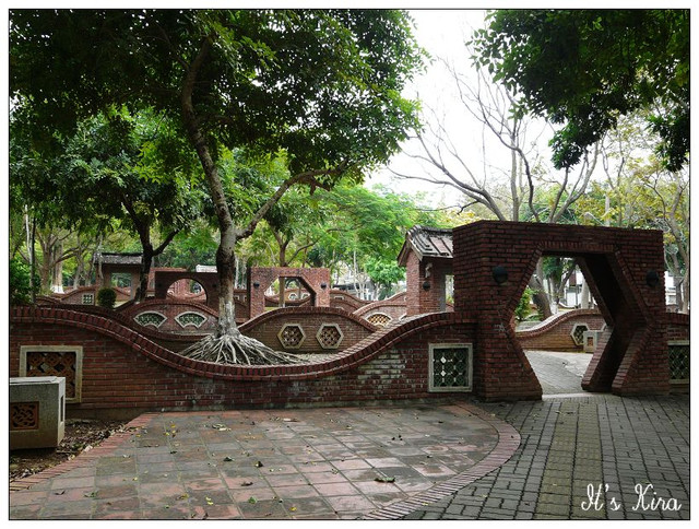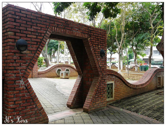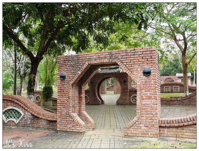 公園的外牆和園區內造景多半都是這樣的紅磚拱門