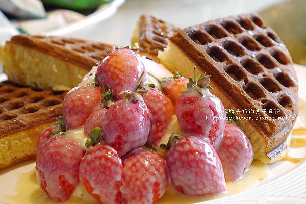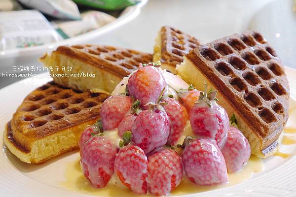 草莓煉乳鬆餅,這個煉乳會不會太大方了啊~~~