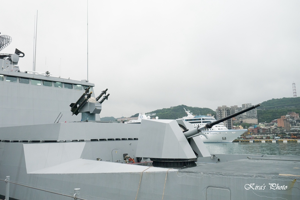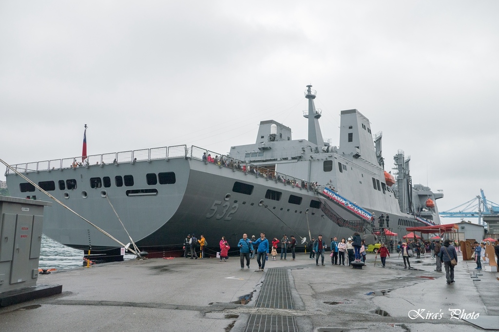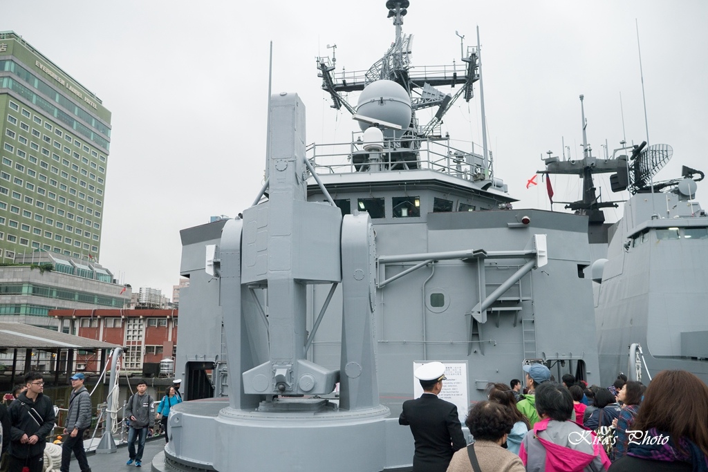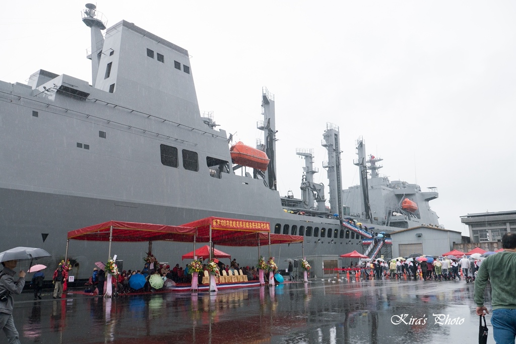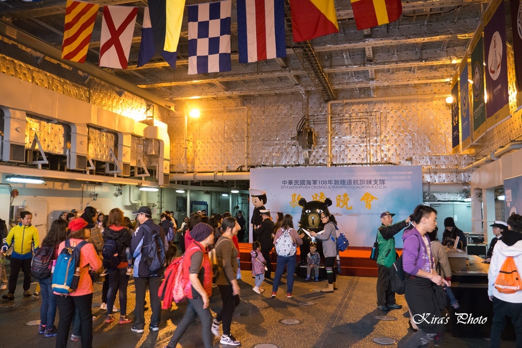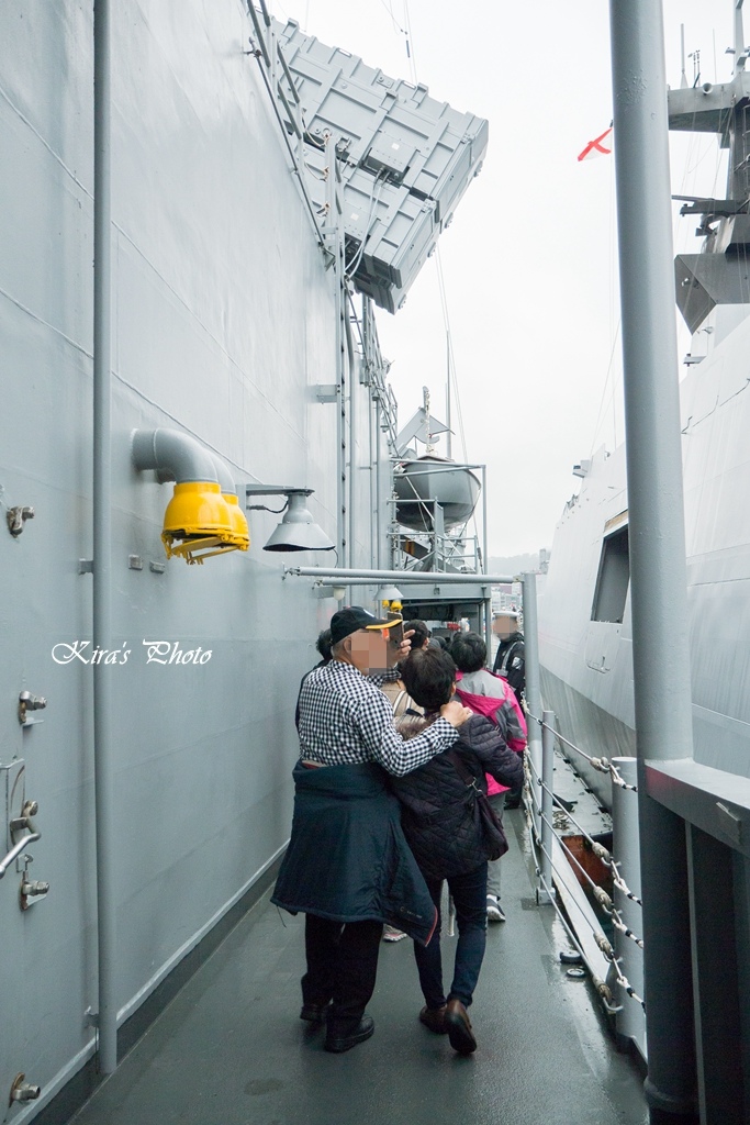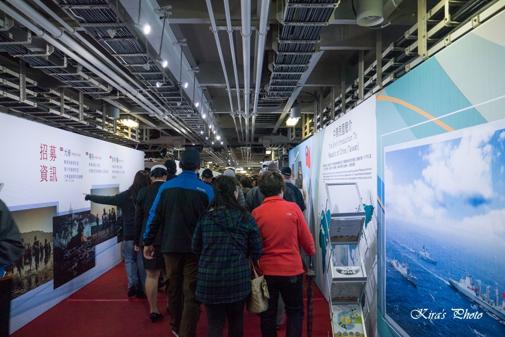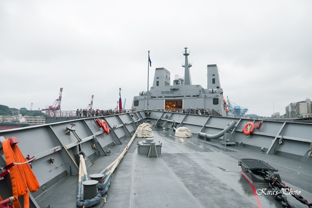 參觀日大雨滂沱,光是停車就停到步行約莫15分鐘距離以外的停車場,向目的地邁進的途中兩旁都有好多人和車,這樣的雨勢和人潮,其實當下也有點猶豫要不要放棄軍艦改奔廟口算了,好在人潮消化的還算快,沒有等太久,不過原本預定會有的表演好像就因雨取消了,也是有點可惜