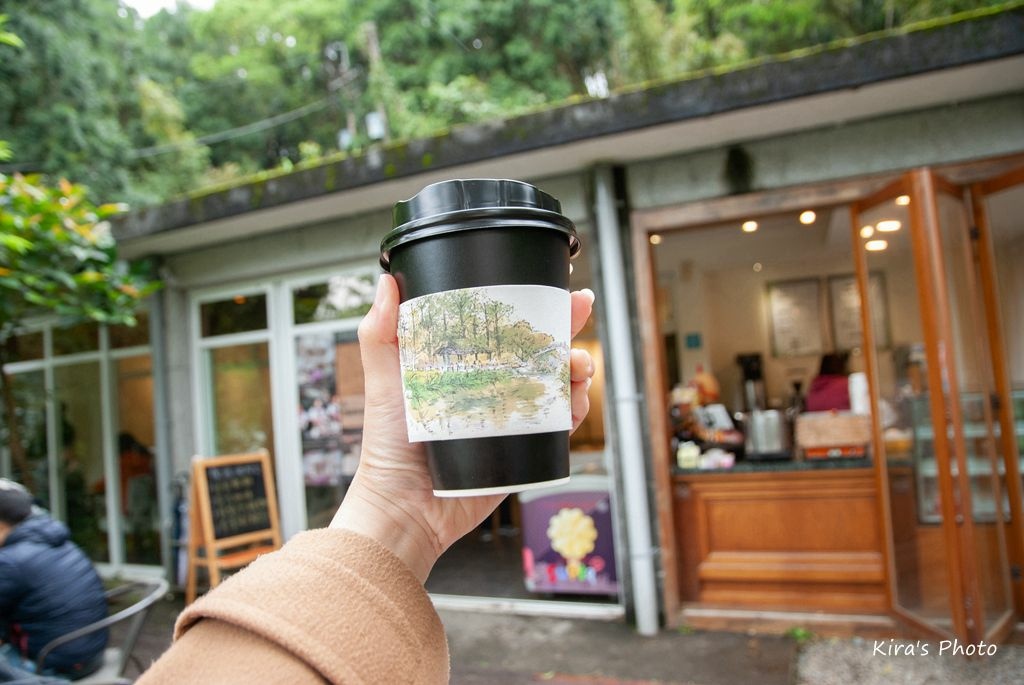 我因為天氣太冷買了杯熱咖啡,坐在湖畔享受短暫的休息時間