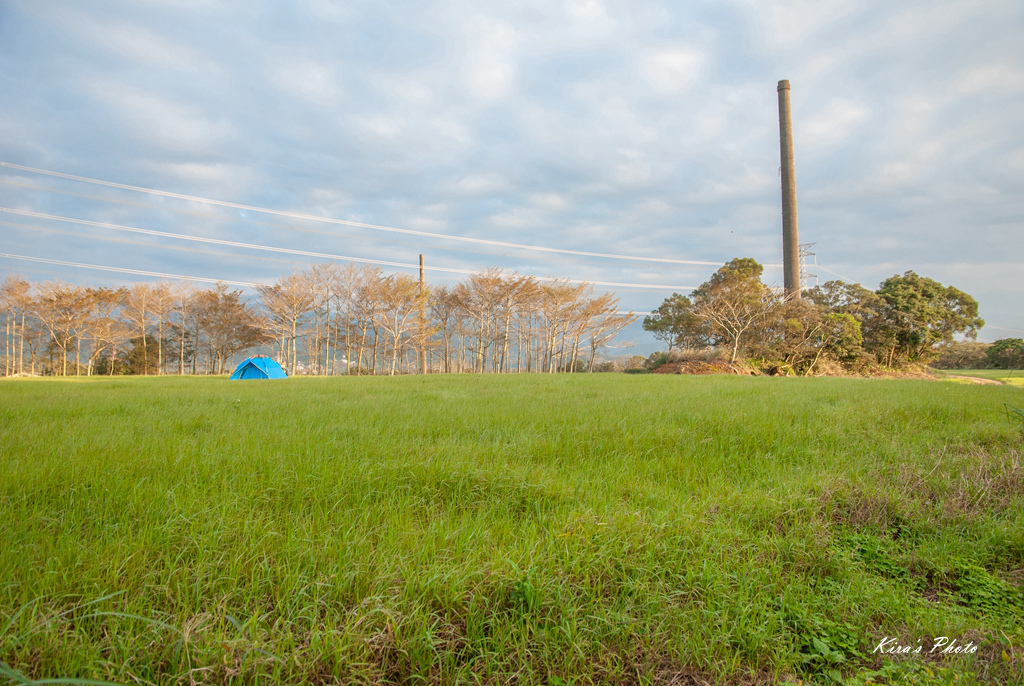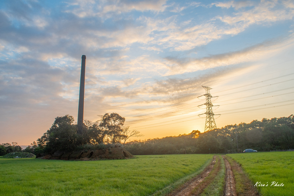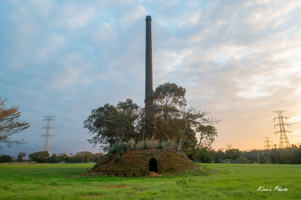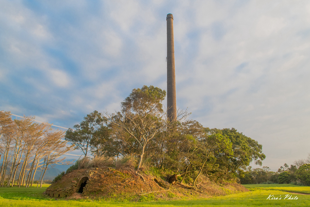 幾支煙囪孤單佇立在一旁,還有一小排應該也是磚窯廠的老建物