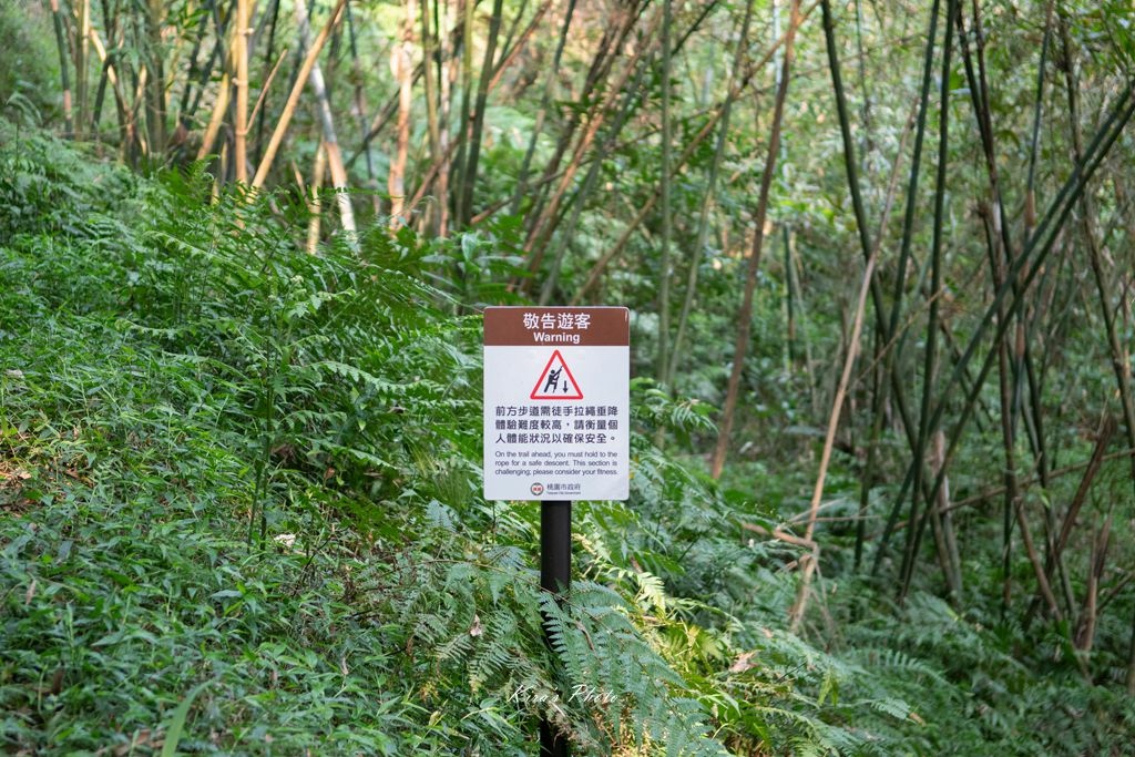 然後自然野徑走著走著就看到警告標示牌「前方需徒手拉繩垂降,難度較高」