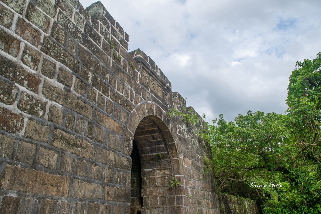 海門天險的營門和石牆,雖然石階不高但還是有點可怕呀