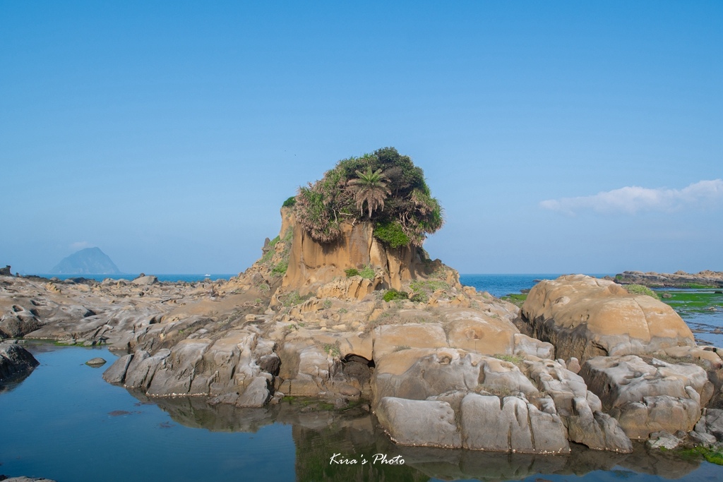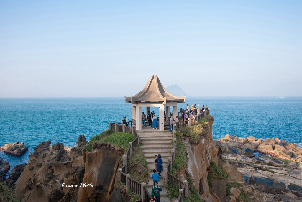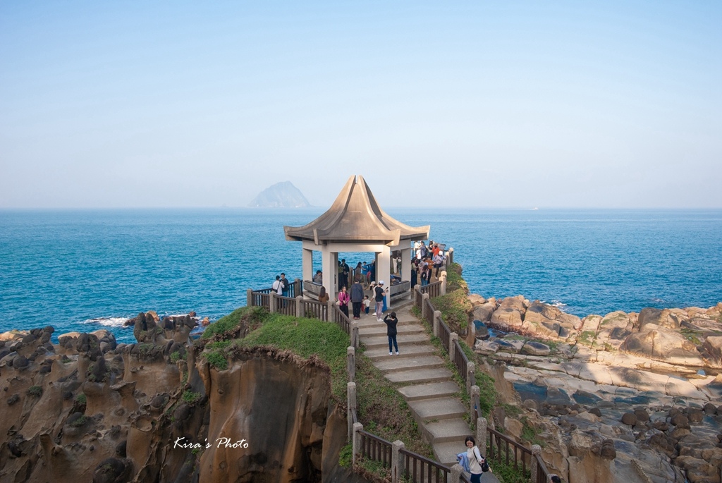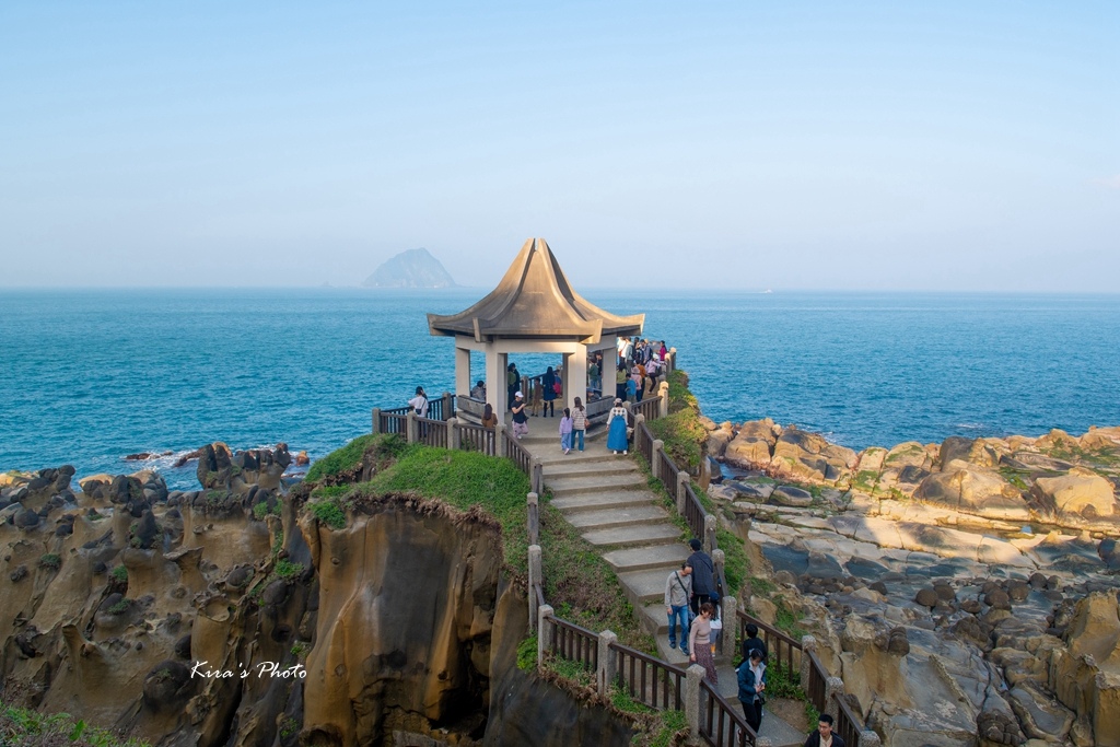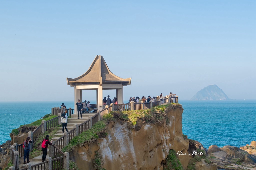 座落在海邊岩石上的小涼亭,可以遠眺基隆嶼,視野開闊