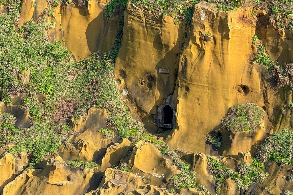 在前往等嶼亭步道上可以看見的一個海蝕洞穴歷史遺跡