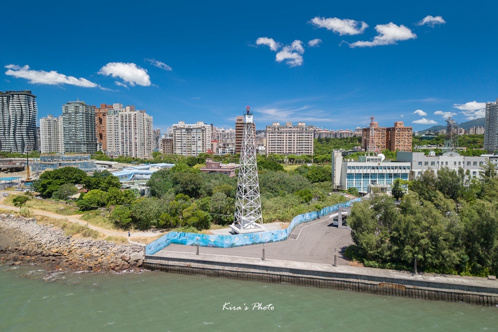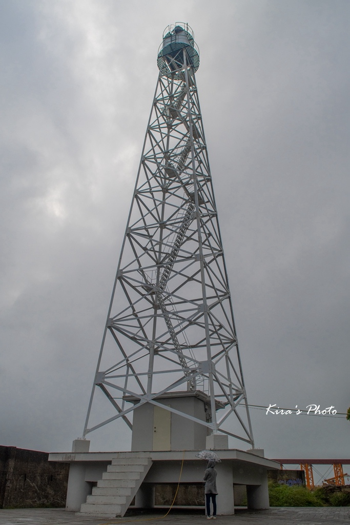 位於新北市淡水區淡水港北岸河口的白色方形鋼架鐵塔(塔高32.7公尺)